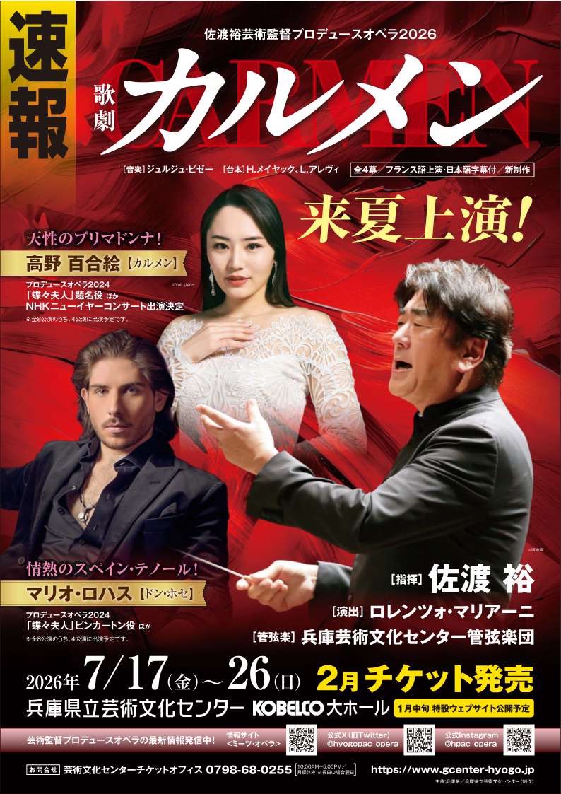 【高野百合絵】佐渡裕芸術監督プロデュースオペラ2026 『カルメン』に、タイトルロールで出演決定!